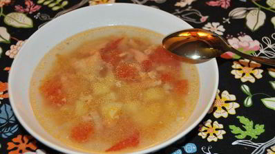 Останньою справою вилити в сотейник з рибою і овочами літр томатного соку, тушкувати блюдо півтори години на повільному вогні. Хоч і в бичках багато кісток, але після довгого гасіння вони стають м'які і не відчуваються. Для любителів кисло-солодкої юшки можна додати оцет і цукор.