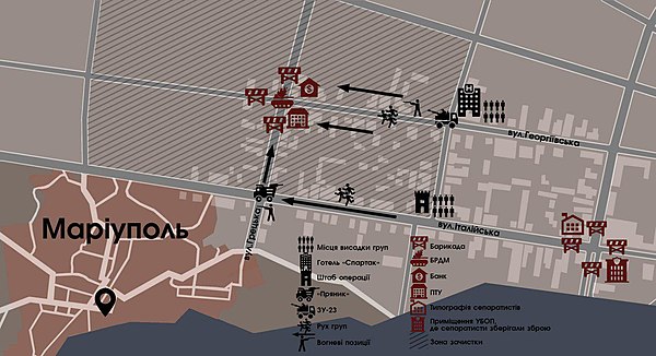 «Азов» вдарив по бойовиках із зенітних установок ЗУ-23. Потім вступили штурмові групи – вони повинні були взяти відділення банку на вул. Грецькій.