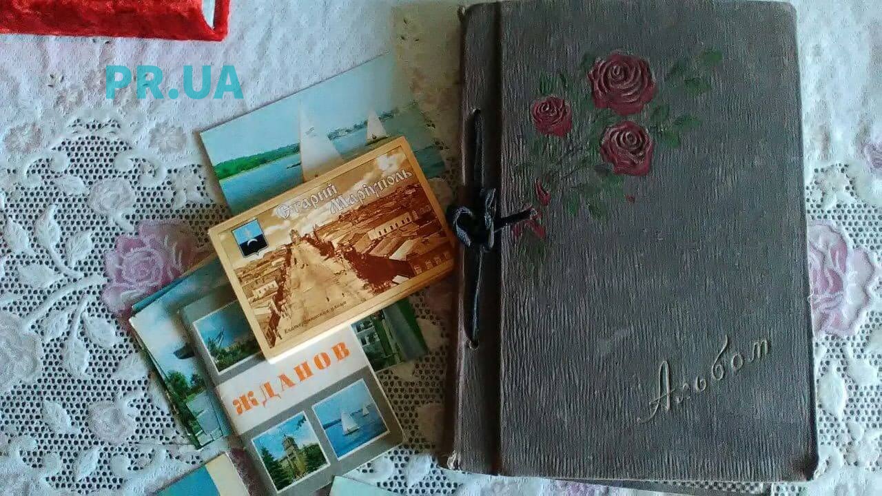 Однією з таких з PR.UA поділилася літня маріупольчанка Мирослава Корольова і показала свою колекцію фотографій та листівок міста 1950-х років. Вона дбайливо зберігає їх в справжньому паперовому альбомі з тисненими червоними трояндами. Тут не тільки Маріуполь, а й інші улюблені міста.