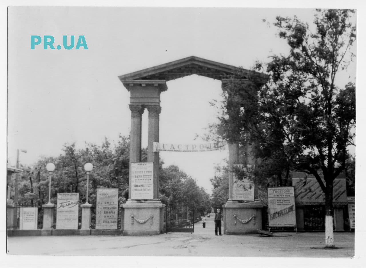 «У 50-х роках там стояла ось така арка, це потім її знесли та побудували нову. Цю фотографію зняв мій двоюрідний брат Георгій Котельніков. На момент знімання це був 1953 рік. Коли я була студенткою, тут був танцмайданчик і я ходила сюди на танці», — розповіла Мирослава Корольова.
