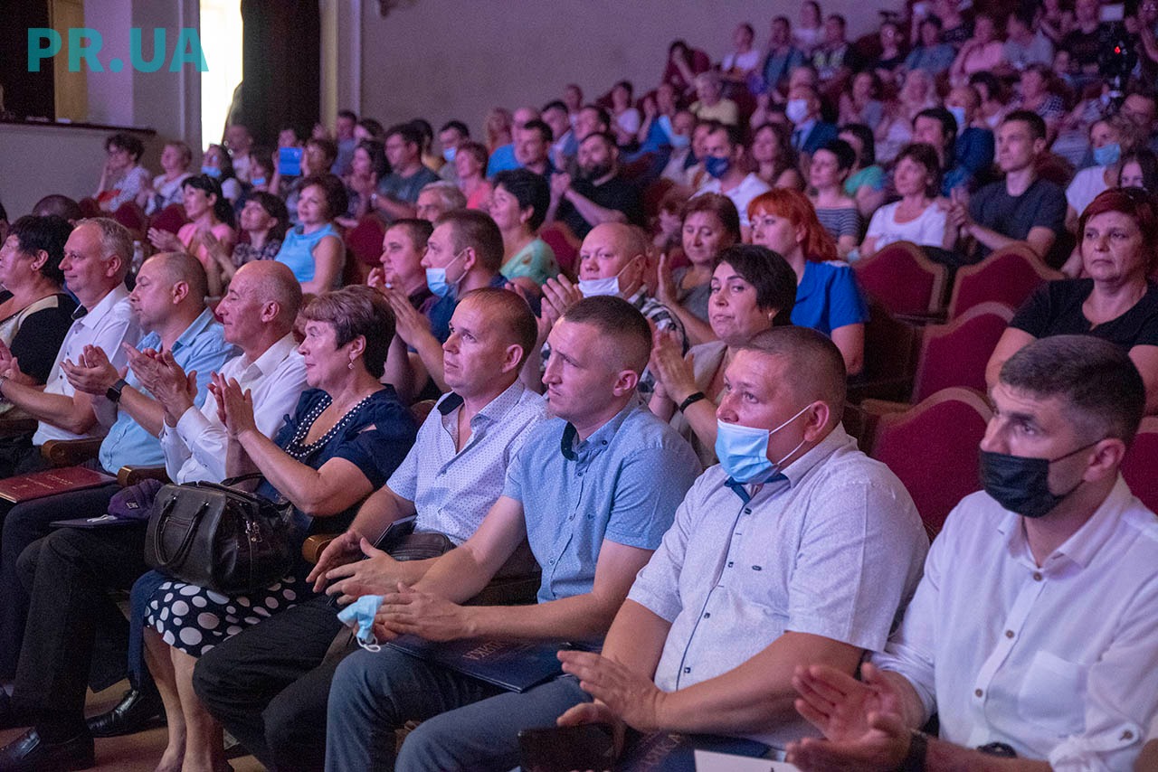 Привітання від імені голови Донецької обласної державної адміністрації Павла Кириленка зачитав зі сцени театру директор департаменту розвитку базових галузей промисловості Артем Литвинов.