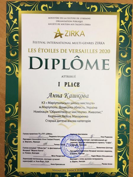 Анна Кашкова - учениця відділення образотворчого мистецтва школи мистецтв. Викладач Любов Макаренко зазначила, що Анна - талановита і обдарована дівчина.