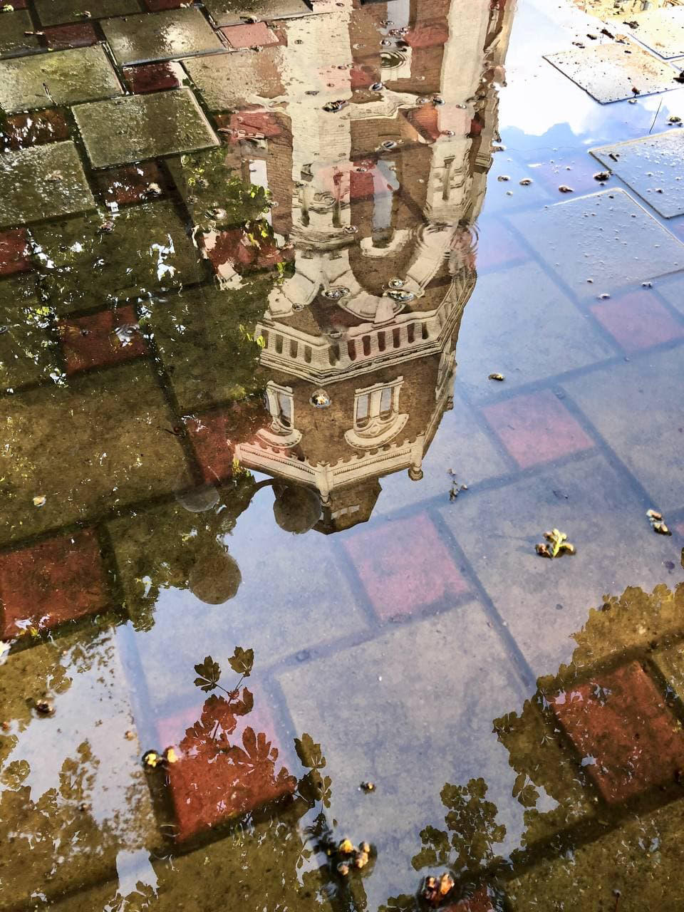 Третє місце і заохочувальний приз - велику рамку для кількох світлин - журі присудило оригінальній за задумом світлині Марини Головневої. Їй вдалося сфотографувати «Вежу», бездоганно відображену в калюжі на алеї після літнього дощу.
