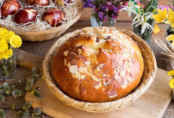 З теплого молока, дріжджів, цукру і невеликої кількості борошна приготуйте опару і залиште, щоб вона підійшла. У підігрітому борошні розмішайте сіль, цукор, розтерті жовтки і розігріте тепле вершкове масло. Додайте опару, що підійшла, тепле молоко і замісіть досить круте тісто. Додайте рубаний мигдаль (за бажанням) і родзинки. Тісто ще раз замісіть і поставте в тепле місце для бродіння. Тісто, що підійшло, викладіть на посипану борошном дошку, сформуйте з нього булку і покладіть на змащений жиром деко. Залиште, щоб воно піднялося. Потім верх булки надріжте гострим ножем, смаженим розтертим жовтком і посипте рубаним мигдалем (за бажанням). Випікайте 40 хвилин при 180 °С.