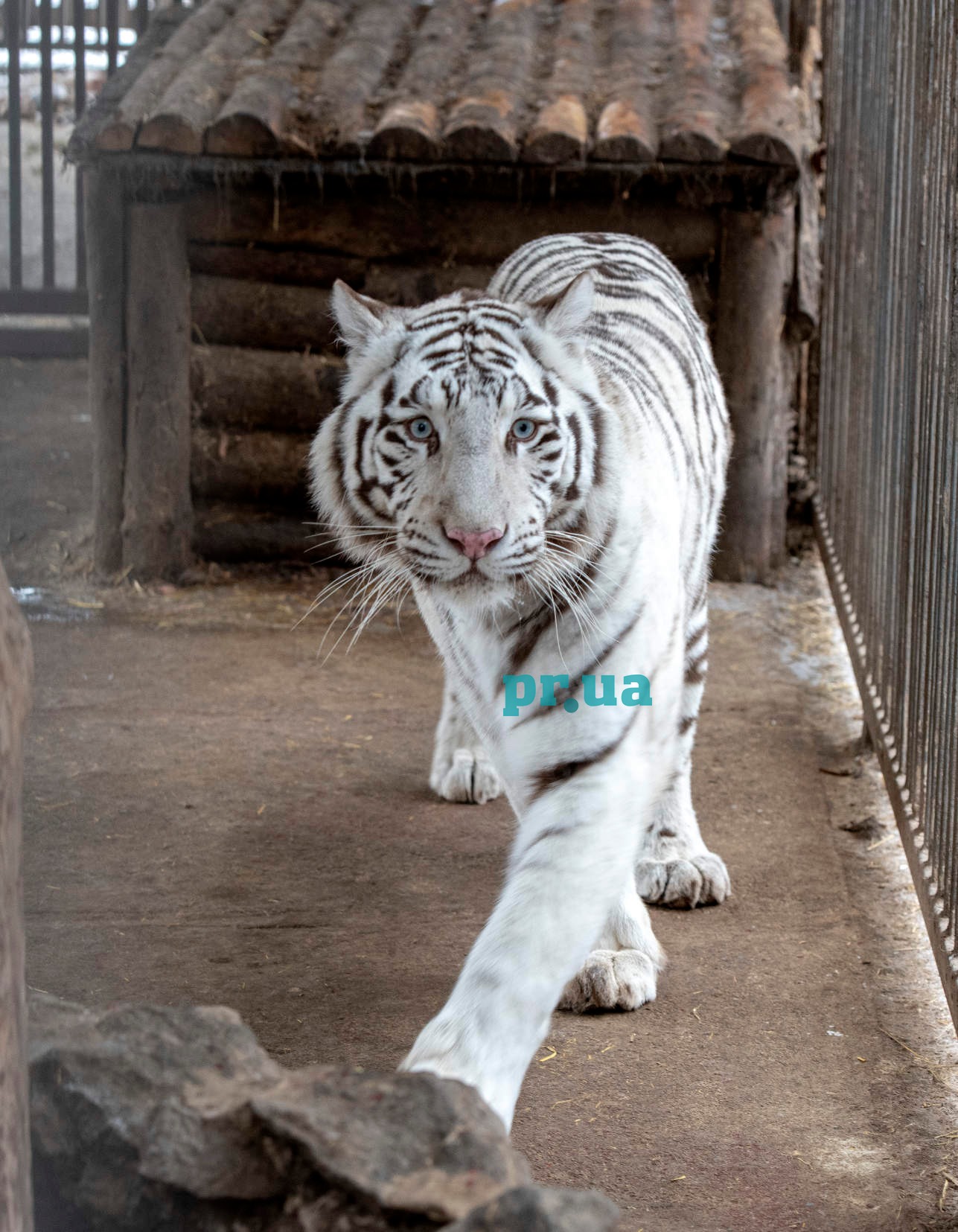 "Ці тигри вперше з'явилися в Індії, – розповідає Наталія Луценко. – Їх вивели, схрестивши звичайний тигр з альбіносом. Вийшов білий тигр у темну смужку. У всьому світі їх менше ніж 2500".