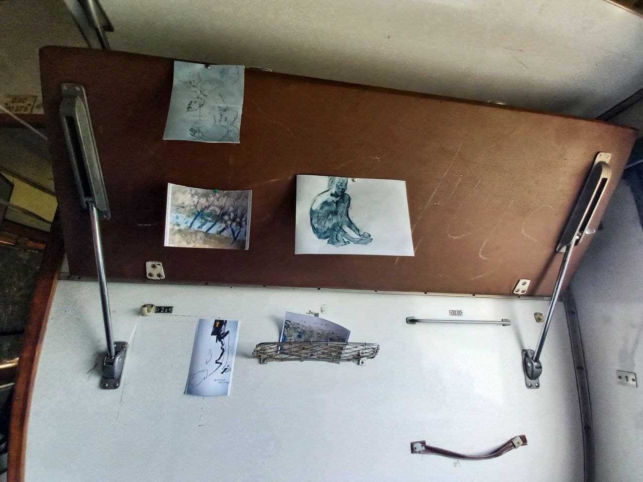Стихійні виставки виникали майже у всіх вагонах. Відвідувачі фестивалю приносили свої світлини, картини, колажі та залишали їх в купе.
