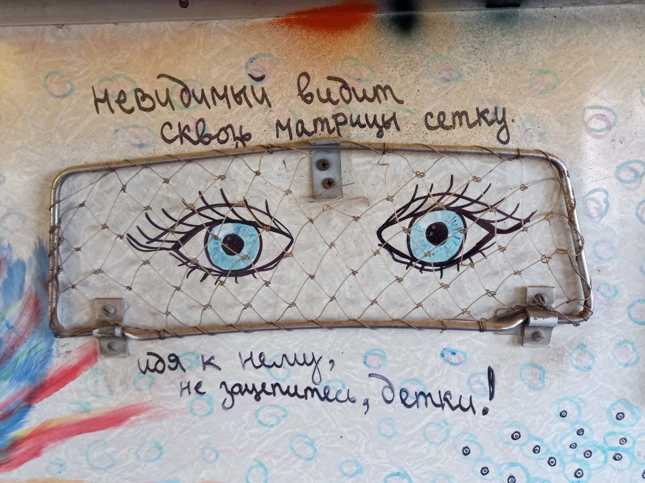 Каліграфія прикрасила стіни херсонського вагона. Художник Максим Кільдеров розповідає, що йому важливо було заповнити простір і знайти вдале поєднання кольорів.