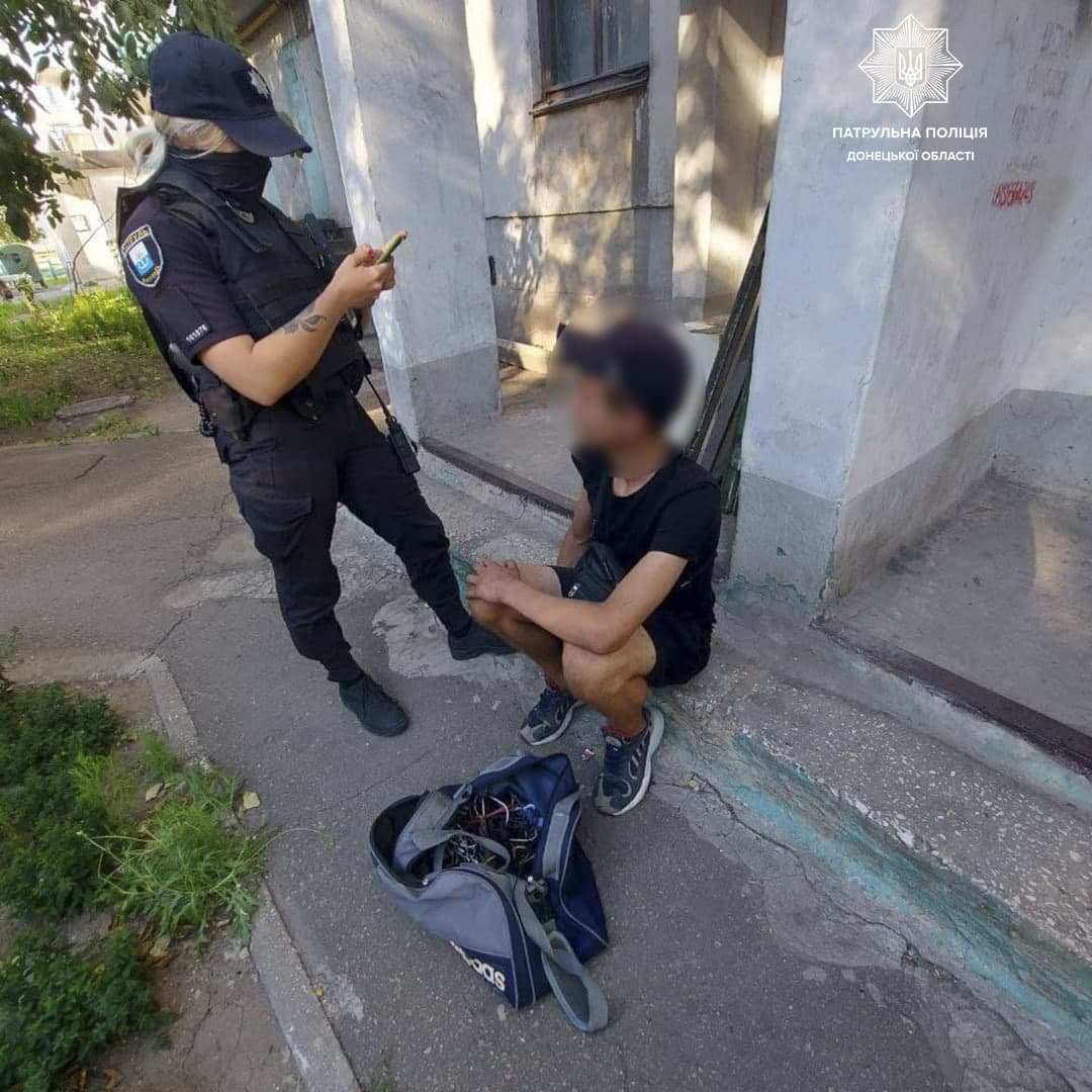 Саме у квартирі патрульні й виявили передбачуваного зловмисника. Ним виявився 15-річний маріуполець. Він вийшов до поліціянтів через двері, відкривши їх зсередини. У руках підлітка була сумка, в якій знаходилися мобільні телефони, комп'ютерні шнури, паяльник і інші речі, пов'язані з електронікою.