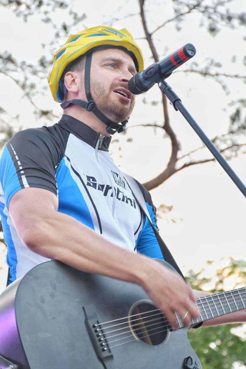 Другий концерт – вечірній, для всіх охочих. Музикант нагородив маріупольських спортсменів, які брали участь в той же день в велоквест від ВелоАссоціаціі Маріуполя. Сам залишився в спортивній формі та велошоломі – і, взявши гітару, зіграв репертуар СКАЙ.