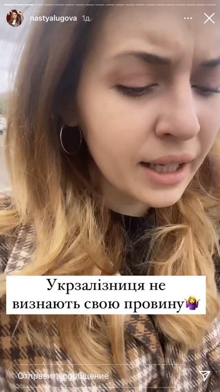 У бесіді з одним з українських телеканалів вона заявила, що вимагає від української залізниці компенсацію в розмірі 500 тисяч гривень.