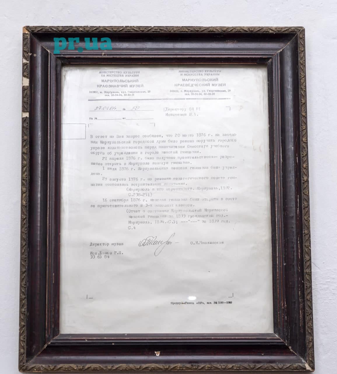 Маріупольська гімназія №1 приваблює своєю історією багатьох. Побувати в музеї та побачити на власні очі раритетні документи, відтворену форму, фотографії дівчат, оригінальні паспорт викладача та учнівський квиток того часу прагнуть багато хто. Зберігачка музею та вчителька української мови та літератури Ганна Дежець зізнається, що екскурсії проводить із задоволенням.