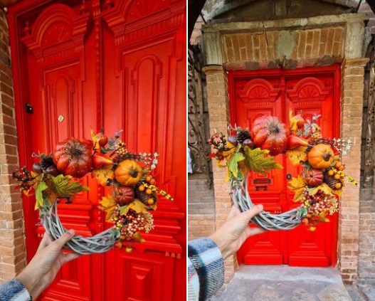 Однією з нових яскравих локацій Маріуполя стали старовинні двері будинку по вул. Фонтанній. З моменту повернення їх після реставрації городяни проходять квести та вже роблять селфі. Нещодавно маріупольчанка Інна Котляр зробила фото з осіннім вінком, який відобразила на тлі цих дверей.
