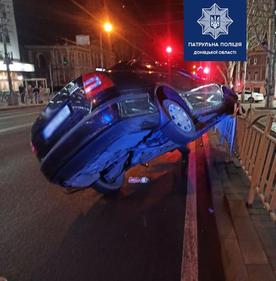 Так, водій Skoda не впорався з керуванням і врізався в металеву огорожу, практично «застрибнувши» на металевий паркан. В результаті було пошкоджено огорожу. Крім того, колесо машини застрягло на огорожі.