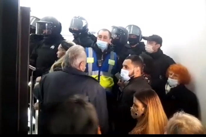 Близько десяти молодих хлопців і дівчат в поліцейській формі мовчки вислуховували образи і стримували натиск. «Я вас попереджаю: ви порушуєте громадський порядок і будете за це відповідати!» - спробував переконати активістів один з правоохоронців.