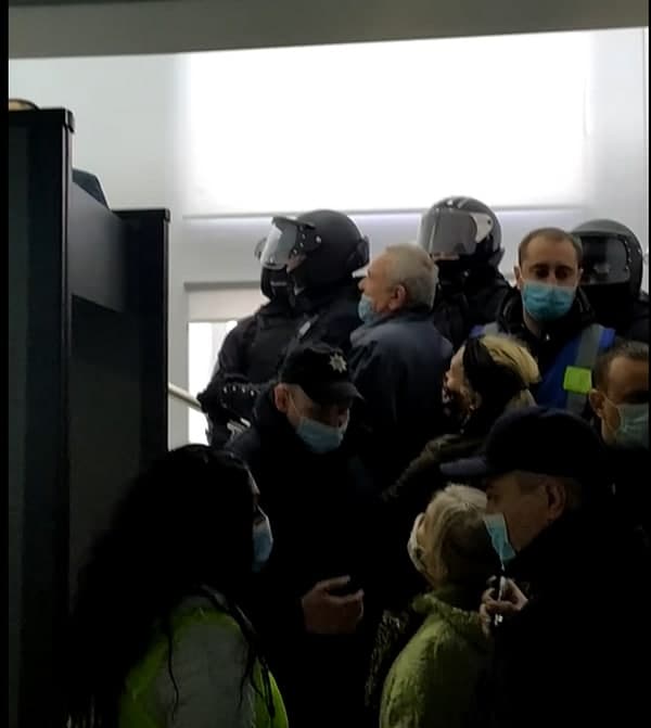 Ігноруючи норми законодавства, активісти перегородили прохід для депутатів та журналістів, акредитованих для висвітлення роботи сесії. А найбуйніші, в числі яких відомі Галина Однорог, Петро Овчаренко та Олександр Чушикін почали напирати на поліцейських і відштовхувати їх, покриваючи лайкою і намагаючись прорвати кордон.
