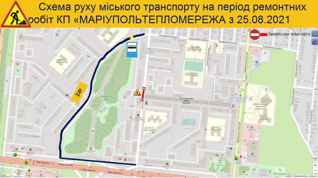 «В рамках проведення планових робіт ККП «Маріупольтепломережа» по вулиці Зелінського з 25.08.2021 до 10.09.2021 буде перекрито рух на ділянці від будинку №41 до будинку №51», - йдеться в повідомленні.