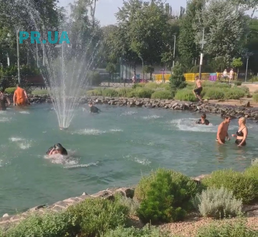 «За словами майстра парку, і вдень, і зараз, і постійно охорона знаходиться на місці, тримає в полі зору цей фонтан і запевнили мене, що сьогодні діти там не купалися. Штраф за купання у фонтані не передбачений, таблички, що попереджають про заборону купання, встановлені. Вода в озері об'ємом 250 кубів така ж, як і в басейнах, ті ж реагенти, нічого забороненого. Єдине, це гостре каміння навколо дна - дитина може на ньому посковзнутися і це найбільша біда. Крім того, навколо фонтану висаджені рослини і, коли діти бавляться і стрибають, вони можуть їх пошкодити», - прокоментував ситуацію PR.UA Павло Дереклєєв.