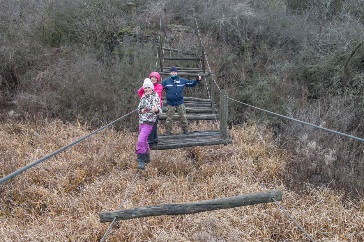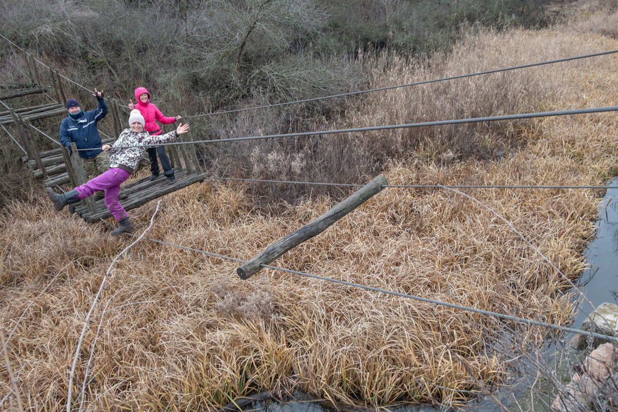 Мандрівники пройшли Катькиним мостом через річку. Його так називають у народі. Щоправда, від мосту залишилися лише перила-троси та напівзгнилі дошки. Для людини зі слабким вестибулярним апаратом він – непереборний.