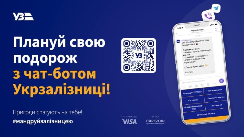 «Проект реалізований спільно з технологічним партнером Visa і «Укрзалізниці» - компанією Middleware Inc. (США) - на базі технології Corezoid Hyperautomation Engine. Компанія Middleware вперше в світі інтегрувала технологію оплати в чат-боті в месенджері за допомогою токенів Visa. Технологія використання токенов робить платежі в чат-боті ще більш безпечними і простими», - додали в «Укрзалізниці».