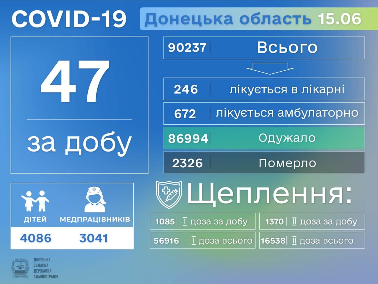 За весь час пандемії в Донецькій області підтверджено COVID-19 у 90 237 осіб. Лікується амбулаторно - 672, у лікарні – 246 пацієнтів.