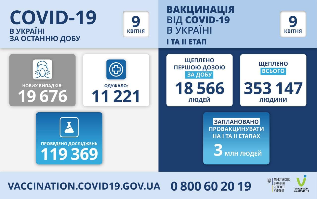 Щеплення проводилось 145 мобільними бригадами з імунізації та 848 пунктами щеплення. Станом на 08 квітня 2021 року до листа очікування вакцинації від COVID-19 записались 431 025 людей.