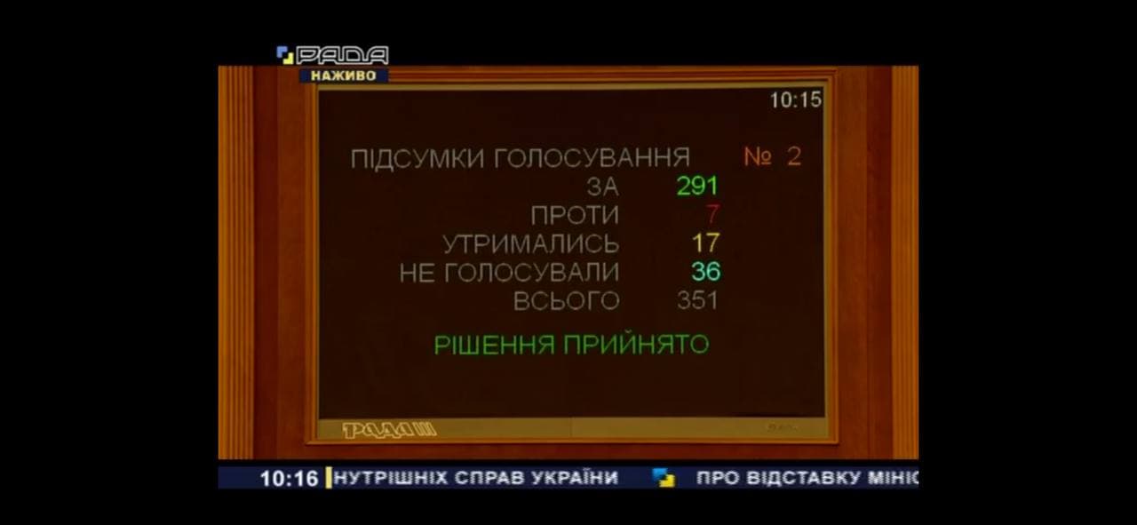 Відповідне рішення підтримали 291 народний депутат на пленарному засіданні в четвер. Проти цього були тільки 7 нардепів, утрималися - 17.