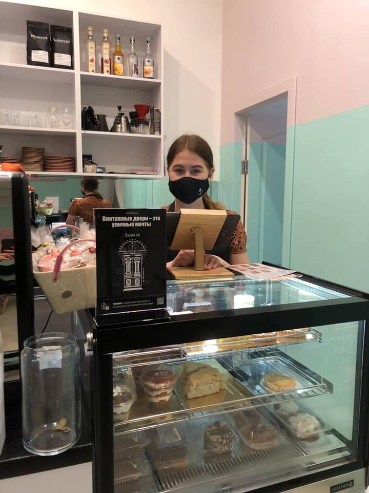 З кожного кавового напою 1 грн перераховується на підтримку проєкту «Життя дверей має значення». Про це повідомляють банери біля входу в кафе, а також на касі. За словами Олени Некрасової, знайомі їй городяни вважають таку ініціативу потрібною.