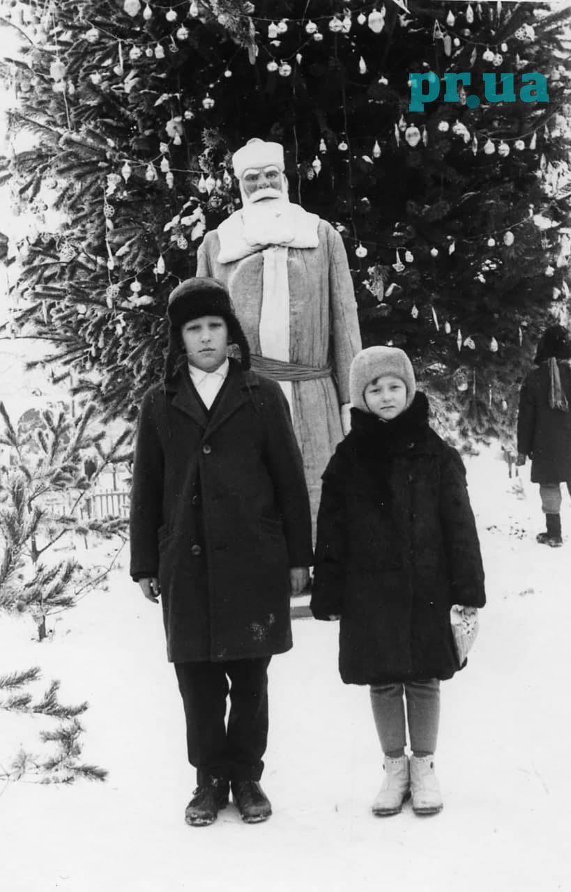 Привозили лісових красунь із місцевих лісництв, інколи ж і з інших областей. Іноді навіть викуповували величезні ялинки, що росли в місцевих дворах. У 60-х ялинку прикрашали в сквері неподалік меткомбінату імені Ілліча. Своїм дитячим фото звідти поділився з нами фотохудожник Борис Дембицький. Позаду стоїть Дід Мороз біля великої пухнастої ялинки, попереду – він із сестрою Наталкою.