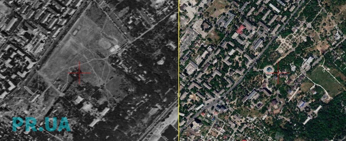 Вид на Приморський парк Маріуполя в 1975-му та 2018-му.