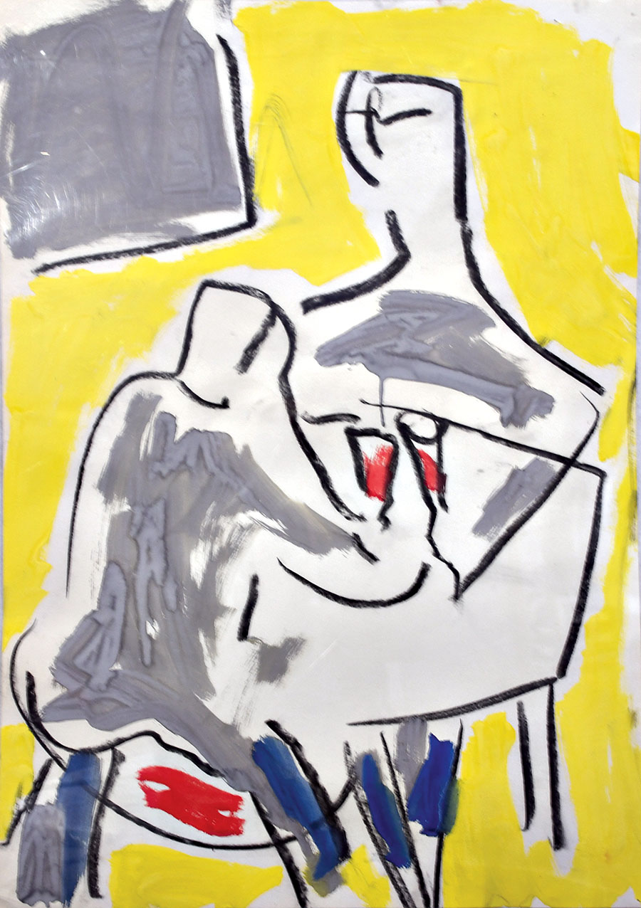 «Атлети». Павло Пономаренко проти штампів: образ спортсменів у нього гранично спрощений, панує колір, а не форма.