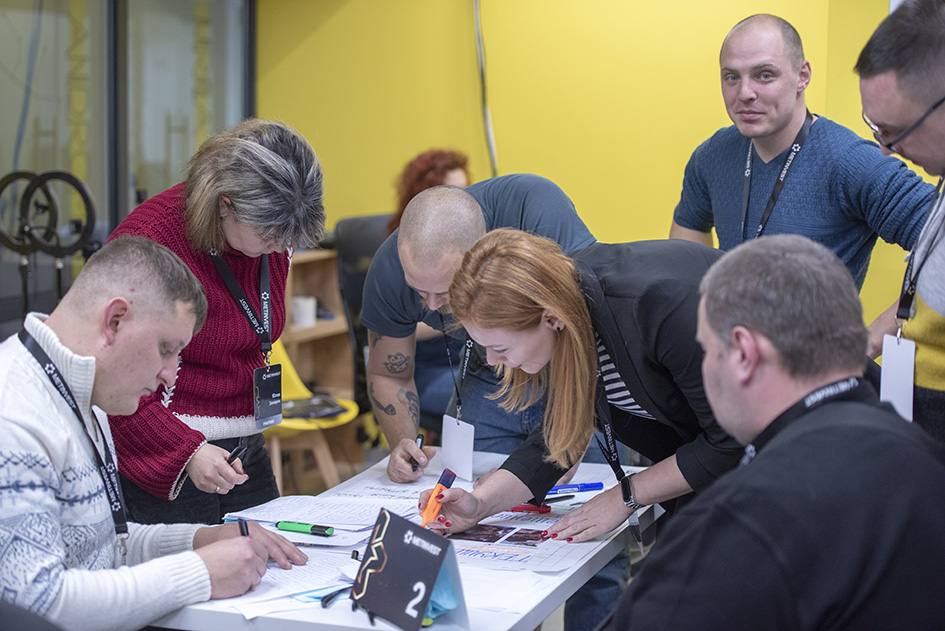 Світлина Аліни Комарової: Один за всіх, усі за одного. Під час хакатону оцінювалися як лідерські якості кожного учасника, так і вміння працювати в команді.