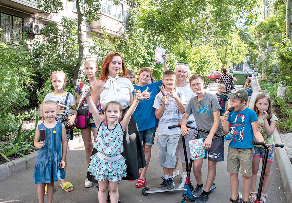На святі малюків і підлітків чекала велика розважальна програма. Чого тільки не підготували аніматори Центру позашкільної роботи - і дискотеку, і танцювальні конкурси, і спортивні змагання. У всьому дворі панувала атмосфера дитинства, кожен перехожий зупинявся подивитися, з яким захопленням діти виконують завдання. Їх було чимало - будували будинок своєї мрії, перетягували канат і навіть вирушили в подорож за сюрпризами. Подарунки найактивнішим вручила Олена Калайтан. Вони отримали квитки в Парк дикої природи, набори наклейок і блокноти. Але без призу не залишився ніхто - всіх учасників пригостили морозивом і чупа-чупсами.