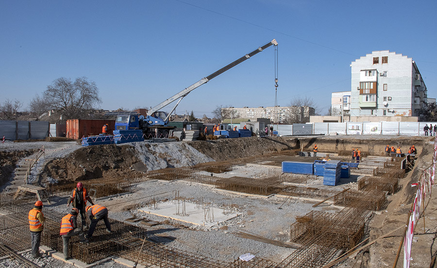 Світлина Кирила Жульова: Не купуємо, а будуємо. Тепер міська влада замість купівлі вторинного житла в партнерстві з маріупольськими металургами почала будівництво соціального сталевого будинку.