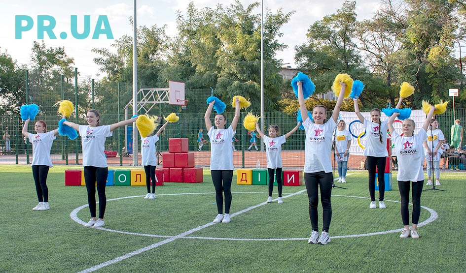 Учні школи №15 продемонстрували присутнім свої нагороди за спортивні досягнення - десятки медалей, грамот і кубків вразили гостей свята. На новому футбольному полі виступили чирлідери під попурі з популярних пісень, а потім у футбол зіграли команди школярів та їхніх батьків.