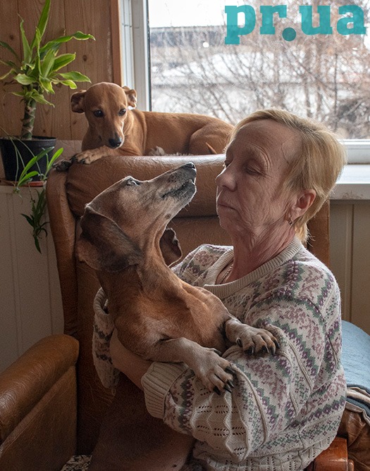 Поки ми розмовляємо, у затишній, наповненій квітами та собаками кімнаті вирує життя. Такси забираються то на одні коліна, то на інші, на коротких ніжках по-альпіністськи намагаються піднятися на улюблену лежанку, облаштовану на підвіконні. Похрумтують сухим кормом, дбайливо насипаним у миску, зазирають у вічі, закликають пограти і дзвінким гавканням виказують ставлення до фактів, що викладає господиня. Між нею та таксами – постійний діалог, навіть якщо здається, що каже тільки вона.