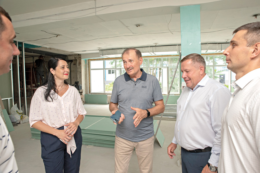 Сергій Магера і Михайло Когут оцінили, як йде ремонт у школі. Зараз найактивніші роботи проходять в їдальні та харчоблоках. Директор ЗОШ №15 Тетяна Лугова розповідає: