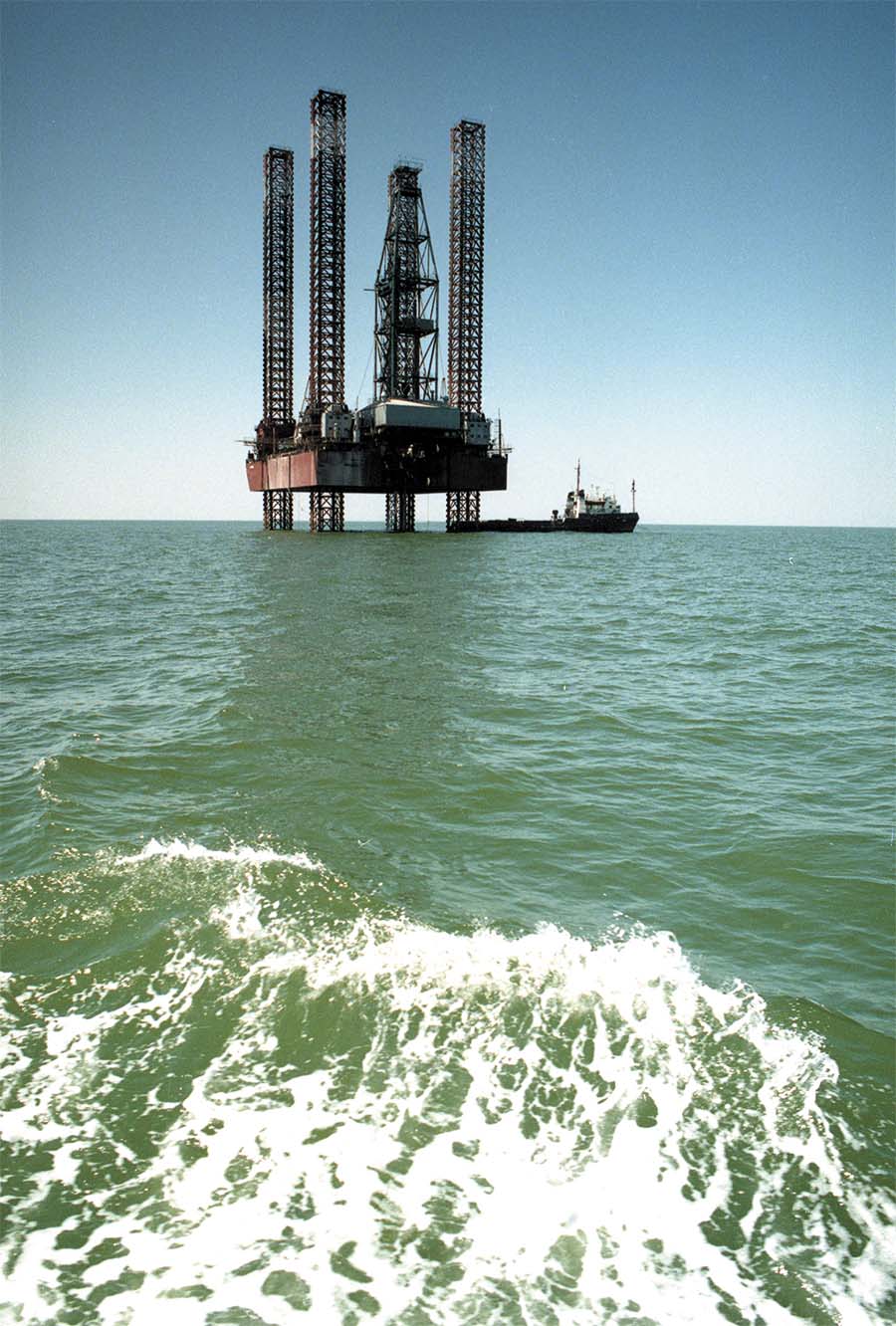 На світлині: Так було. Плавуча бурова платформа типу «Сиваш» веде пошук газу в районі Бердянська.