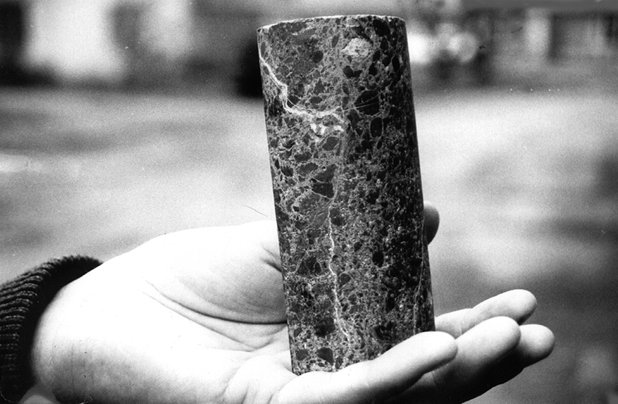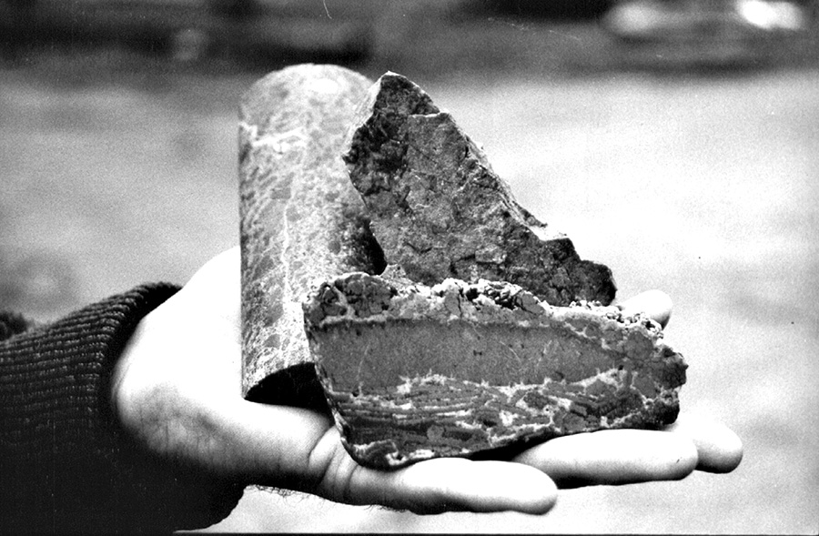 На світлині: З блиском на долоні. Керн з золотими вкрапленнями з розвіданої кімберлітової трубки.