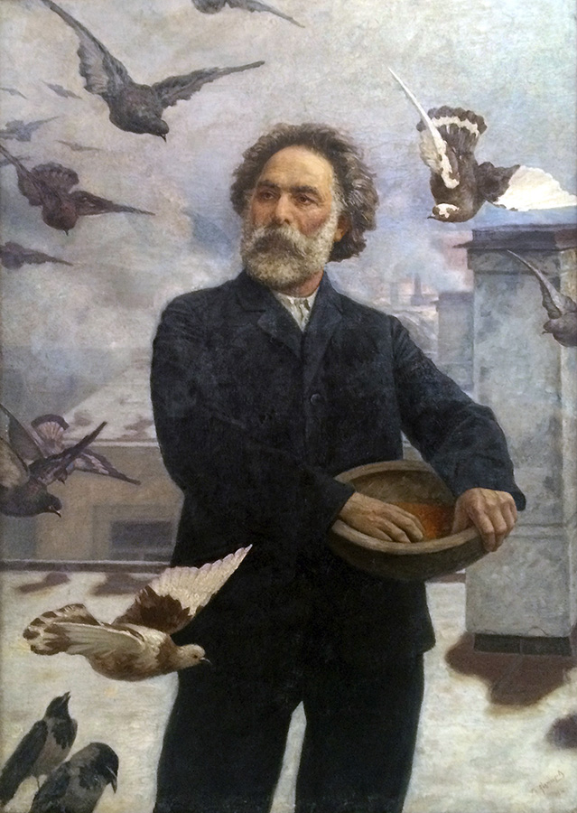 Портрет Архипа Куїнджі. Картина його учня Григорія Калмикова. Вільний як птах. Щодня о дванадцятій годині, коли вдаряла гармата в Петропавлівській фортеці, здавалося, все птиці міста летіли на дах будинку, де жив Куїнджі.