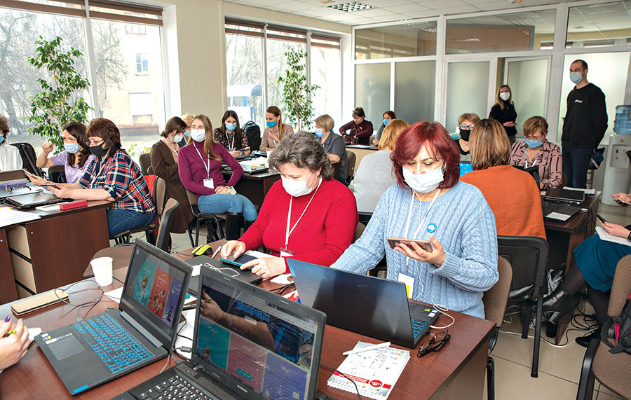 Світлина Аліни Комарової: Від теорії - до практики. Вчителі кажуть, що заново відкривають для себе світ цифрових можливостей.