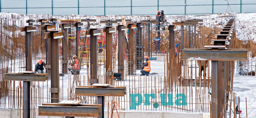 Світлина Аліни Комарової: За будь-якої погоди. Щодня на будівництві Метінвест Політехніки працює близько 150 людей.