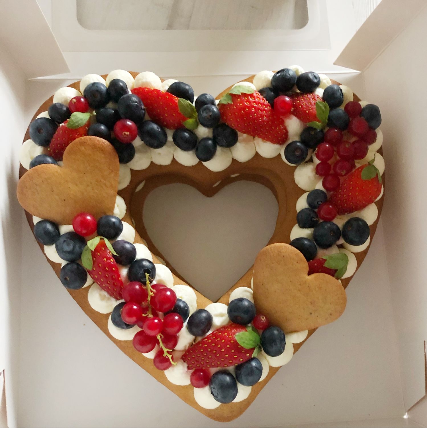 Приготуйте коржі. Тісто розділіть на три частини. Кожну розкачайте на папері для випічки товщиною 3-4 мм. Прикладіть трафарет, вирізаний з паперу або форму-серце. Із залишків можна вирізати маленькі сердечка для декору торта. Перед випічкою коржі наколіть виделкою. Випікайте при температурі 170 градусів до легкого рум'янцю. Повністю охолодіть. Приготуйте крем. У ганаш додайте вершковий сир. Збийте до піків стійкої форми. Крем перекладіть в кондитерський мішок з круглою насадкою.