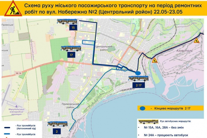 У Маріуполі завтра, 22 травня, у зв'язку з капітальним ремонтом дороги по вулиці Набережній буде знеструмлена контактна мережа на ділянці центральних прохідних МК «Азовсталь».