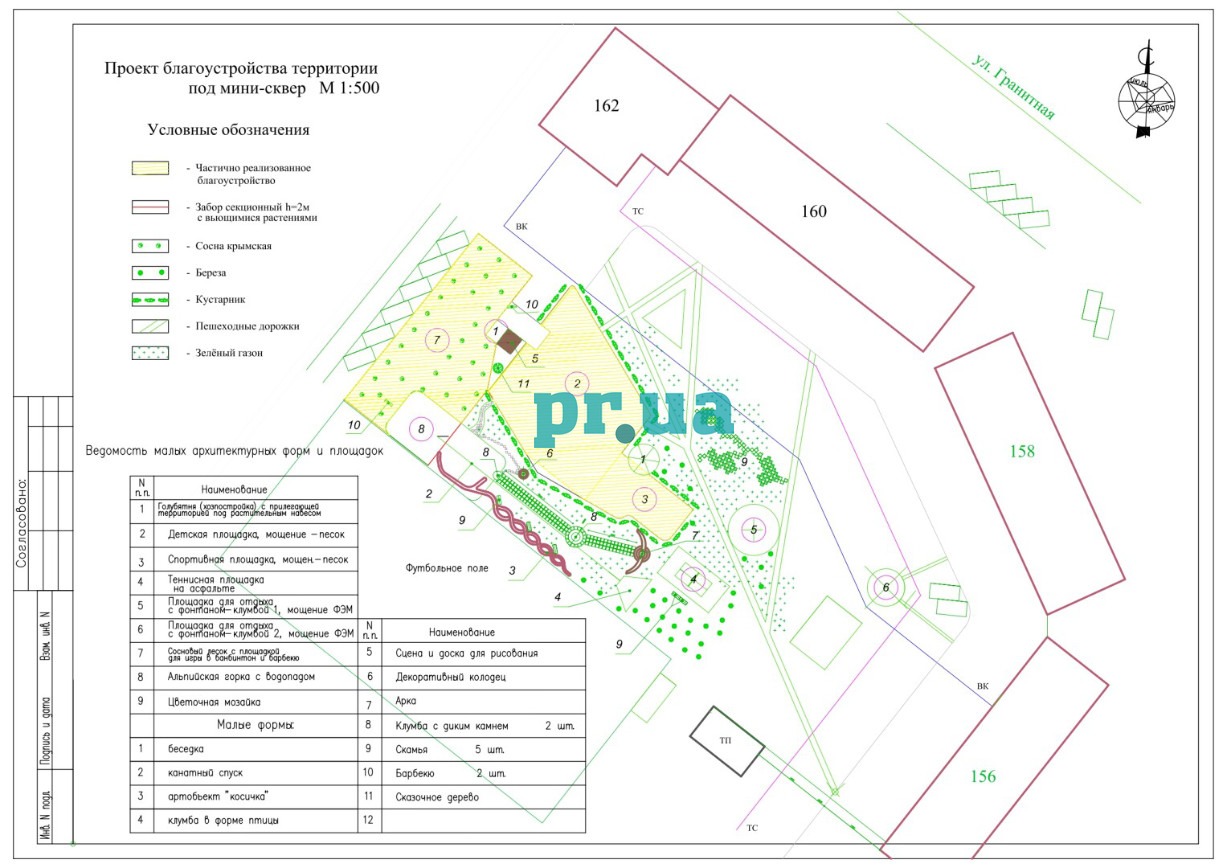 Мінісквер з’явиться на вулиці Гранітній, поруч з багатоквартирними будинками №156 – 162. За задумом автору проєкту, він спрямований на розвиток культурного простору Маріуполя, поліпшення стосунків батьків та дітей, проведення культурно-розважальних заходів та створення місця для естетичного та культурного відпочинку городян.