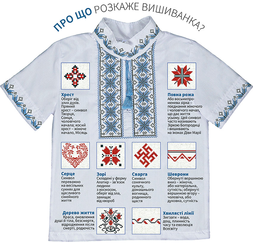 Треба розуміти, що для наших предків вишиванка була насамперед оберегом, який мав захищати людину від усього злого та нечистого. Орнаментами обов’язково прикрашали комірець, манжети, поділ. Вони вкривають ділянки, які знаходяться близько до оголених частин тіла (ноги, шия, долоні) та, як вважалося, потребують особливого захисту. Кожен символ на сорочці має своє значення.